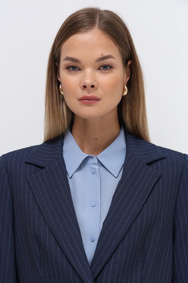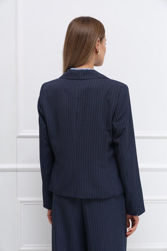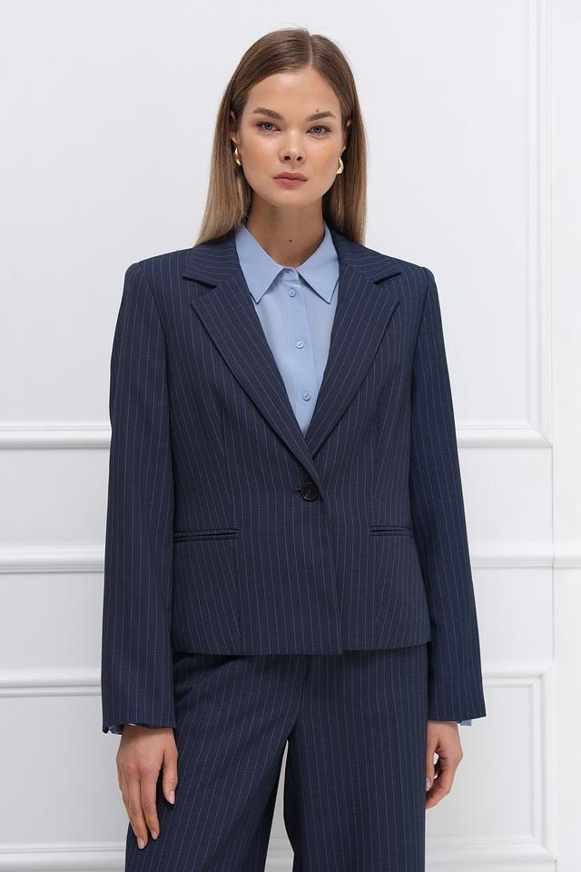Жакет изготовлен из полиэстера (77%) и вискозы (23%), что обеспечивает приятные тактильные ощущения и легкость в уходе. Этот жакет идеально подойдет для создания деловых и повседневных образов, сочетаясь с брюками, юбками и платьями.