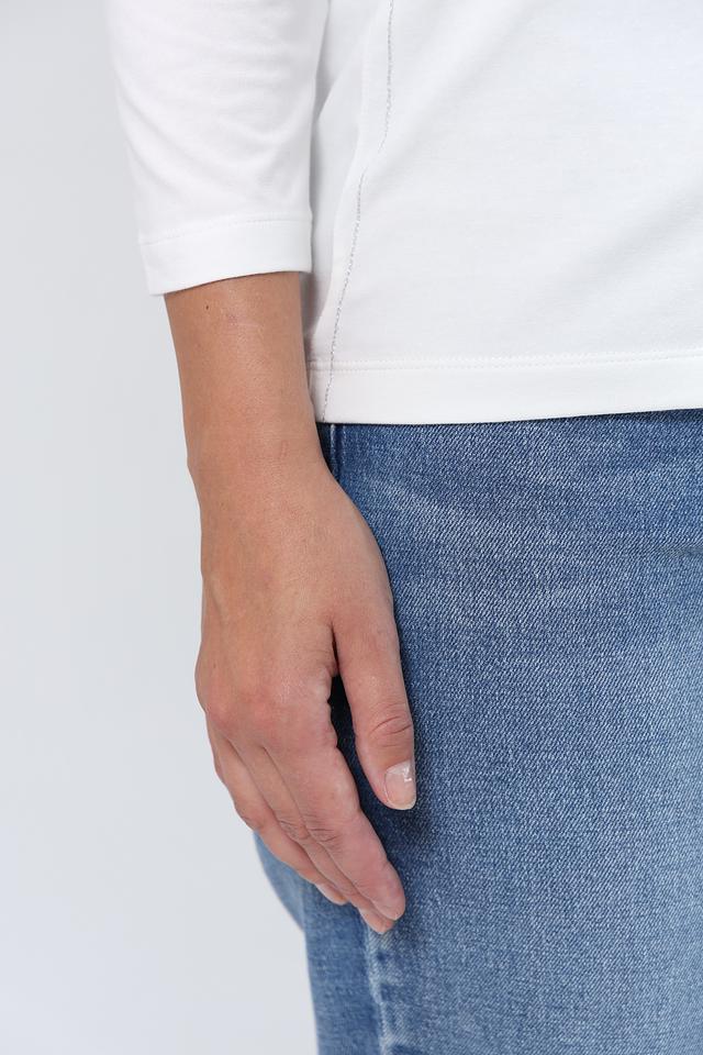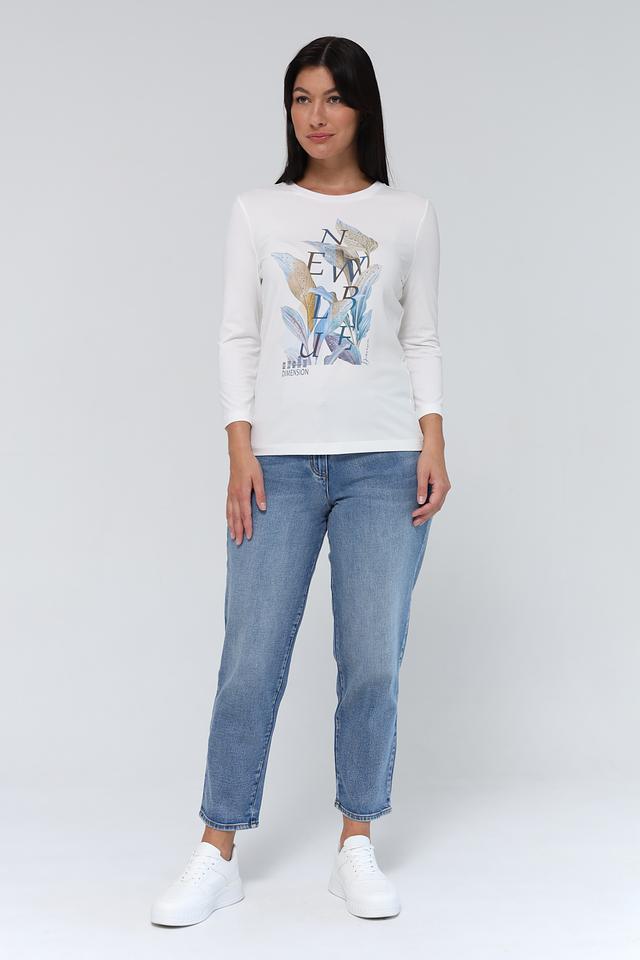 Белая футболка Gerry Weber EDITION с длинным рукавом и оригинальным цветочным принтом. Изготовлена из мягкого хлопка с добавлением модала и эластана для комфорта и хорошей посадки. Состав: хлопок 47%, модал 47%, эластан 6%