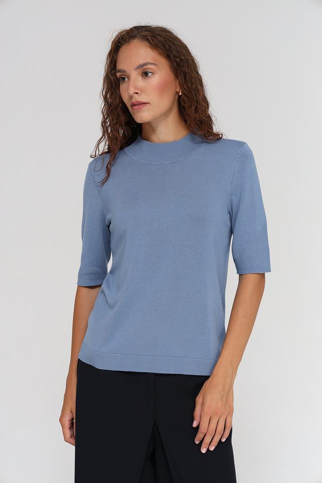 Пуловер имеет прямой крой и короткий рукав, что делает его идеальным для теплой погоды или для создания многослойных образов. Округлый вырез горловины придает модели классический вид.