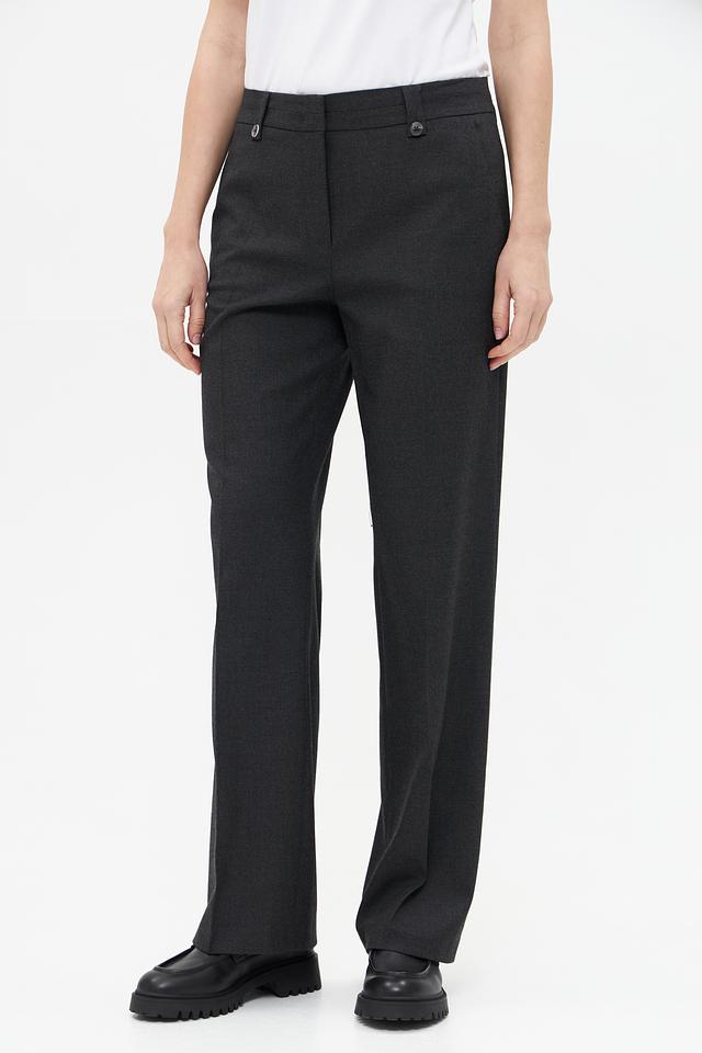Брюки имеют классический крой с прямыми штанинами, что делает их универсальными для создания как деловых, так и повседневных образов. Застежка на пуговицу и молнию обеспечивает надежную фиксацию. Ткань состоит из полиэстера (69%), вискозы (29%) и эластана (2%), что гарантирует комфорт в носке и хорошую посадку по фигуре.