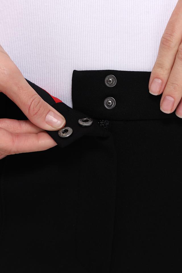 Брюки имеют прямой крой, который обеспечивает свободу движений и комфортную посадку. Застёжка на скрытые кнопки в поясе обеспечивает аккуратный внешний вид. Модель выполнена из высококачественной вискозы с добавлением полиамида и эластана, что придает ткани мягкость, прочность и эластичность.