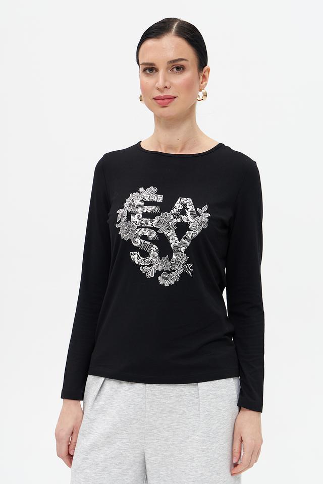 Чёрная футболка Gerry Weber с длинным рукавом и оригинальным цветочным принтом. Изготовлена из мягкого и приятного к телу сочетания модала, хлопка и эластана. Состав: модал 50%, хлопок 45%, эластан 5%