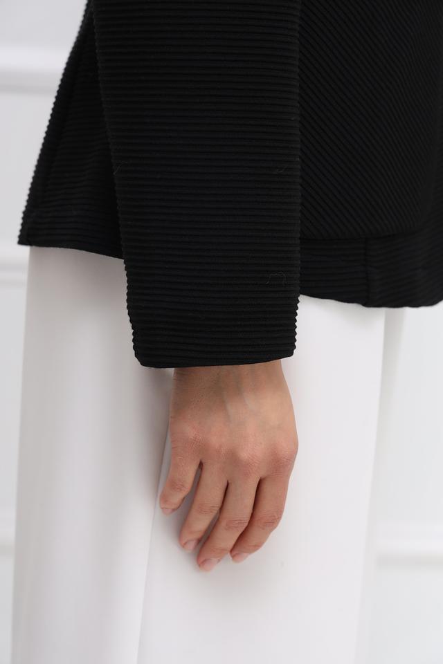 Состав ткани включает полиэстер (68%), вискозу (28%) и эластан (4%), что обеспечивает комфорт в носке, хорошую посадку по фигуре и лёгкость в уходе. Жакет идеально подходит для создания как деловых, так и повседневных образов.