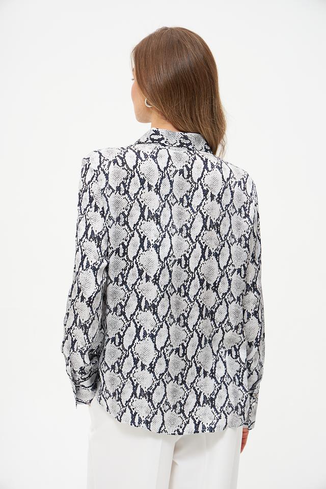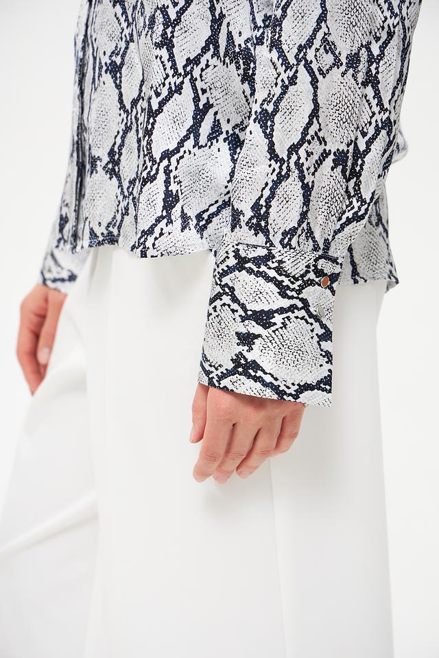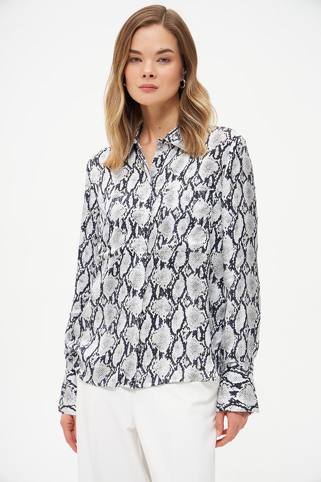 Эта блуза от Gerry Weber – идеальный выбор для создания элегантного и современного образа. Блуза выполнена в белом цвете и украшена эффектным принтом, имитирующим змеиную кожу, что придает ей неповторимый вид.