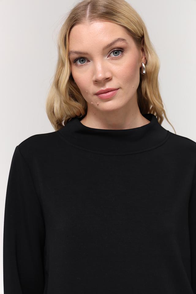 Пуловер изготовлен из высококачественного сочетания материалов: 48% модал, 47% полиэстер и 5% эластан. Модал придает изделию мягкость и приятные тактильные ощущения, полиэстер обеспечивает долговечность и устойчивость к износу, а эластан – эластичность и комфортную посадку по фигуре.
