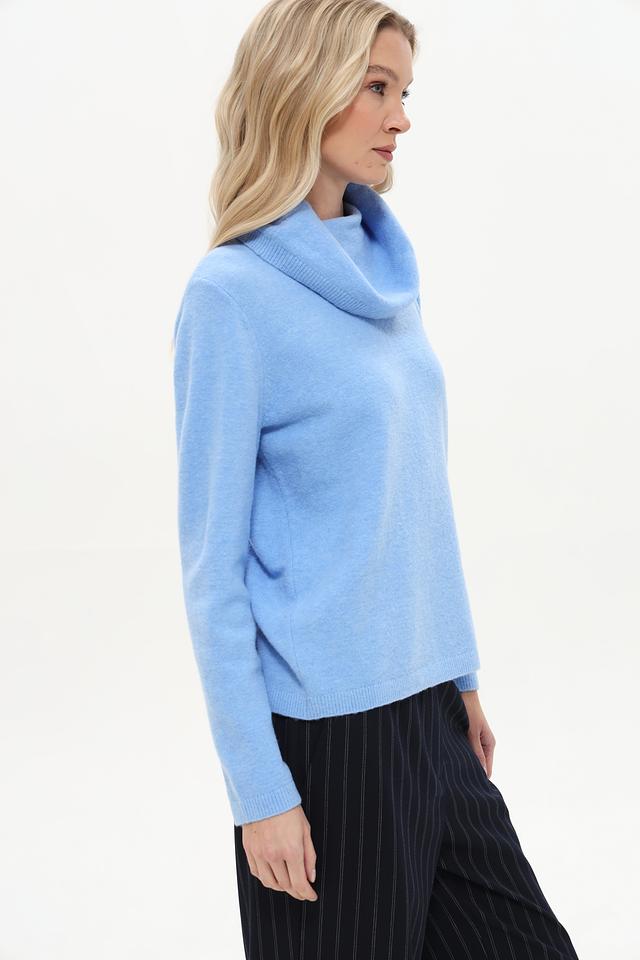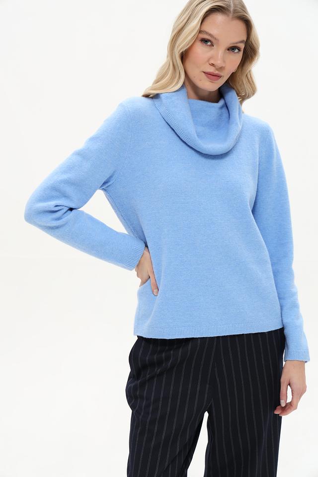 Дизайн пуловера лаконичный и элегантный. Высокий горл придаёт ему изысканность, а вязаная текстура добавляет объём и уют. Пуловер идеально сочетается с брюками, юбками и джинсами, позволяя создавать стильные и комфортные комплекты.
