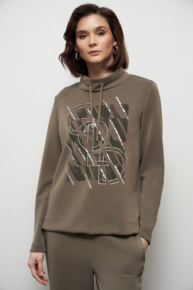 Этот стильный пуловер от Gerry Weber станет отличным дополнением к вашему гардеробу. Пуловер выполнен в хаки цвете и украшен современным графичным принтом, который добавляет образу оригинальности.