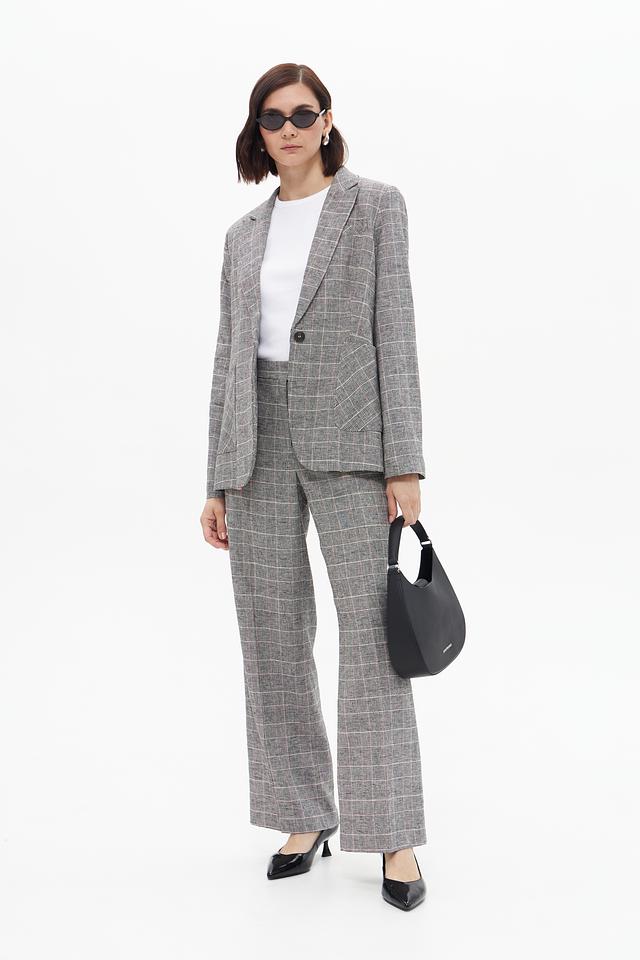 Стильный жакет Gerry Weber серого цвета в классическую клетку — идеальный выбор для создания элегантного образа. Изготовлен из смесовой ткани с добавлением льна и вискозы, обеспечивающей комфорт и воздухопроницаемость. Состав: лен 53%, вискоза 45%, эластан 2%