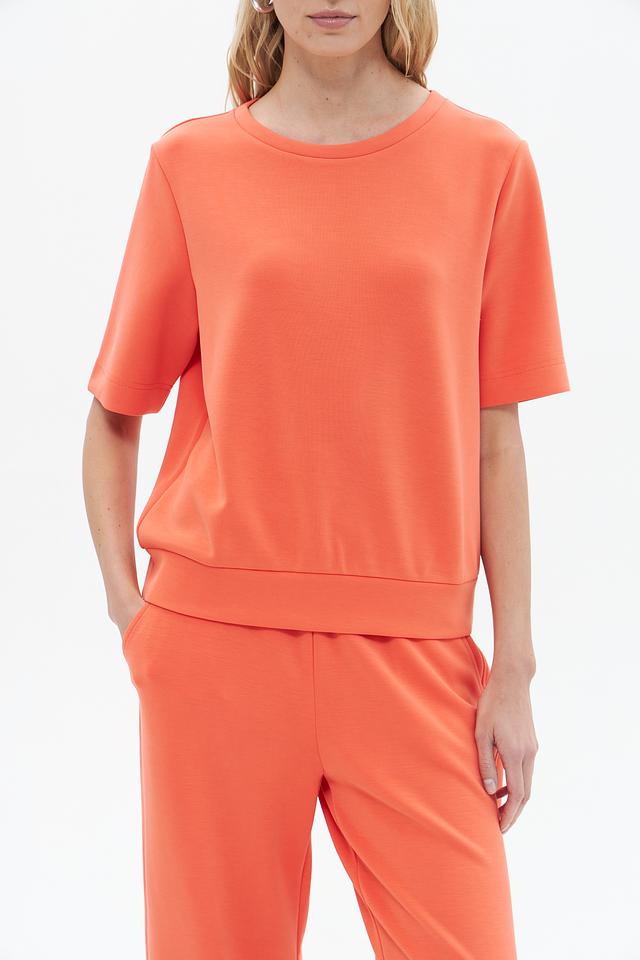 Оранжевый пуловер Gerry Weber из мягкого трикотажа. Модель выполнена из модала, полиэстера и эластана, обеспечивающих комфорт и удобство в носке. Состав: модал 48%, полиэстер 47%, эластан 5%