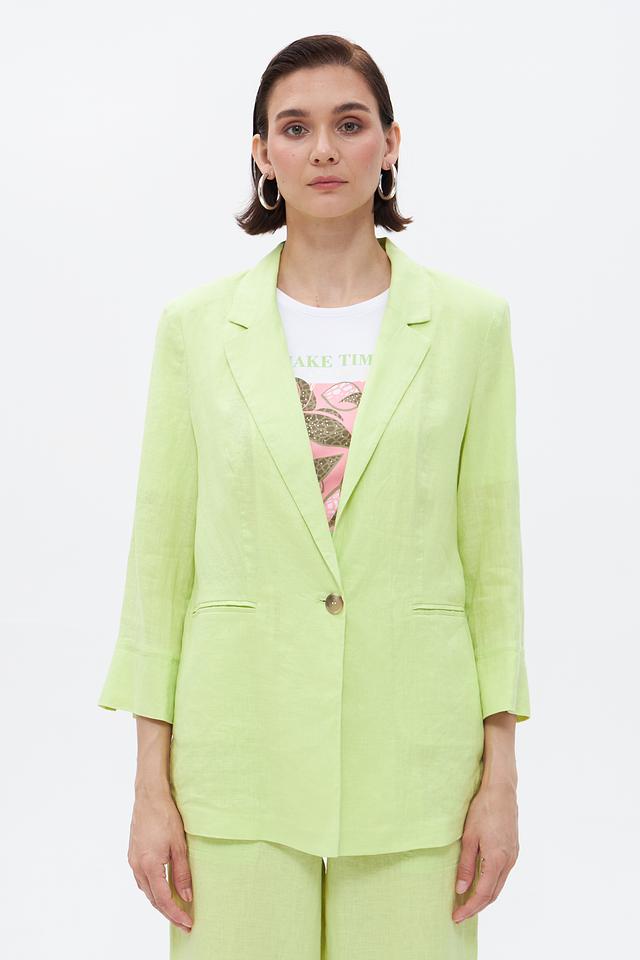 Жакет Gerry Weber мятного оттенка, выполнен из натурального льна. Удобный крой и лаконичный дизайн для создания стильных образов. Состав: 100% лён. Состав: лен 100%