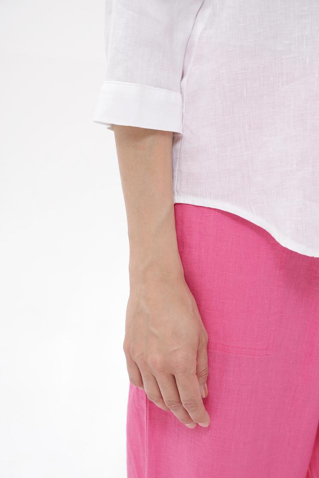 Полупрозрачная фактура льна добавляет блузке лёгкости и воздушности. Эта модель станет отличным дополнением к вашему летнему гардеробу, сочетаясь с брюками, юбками или шортами.