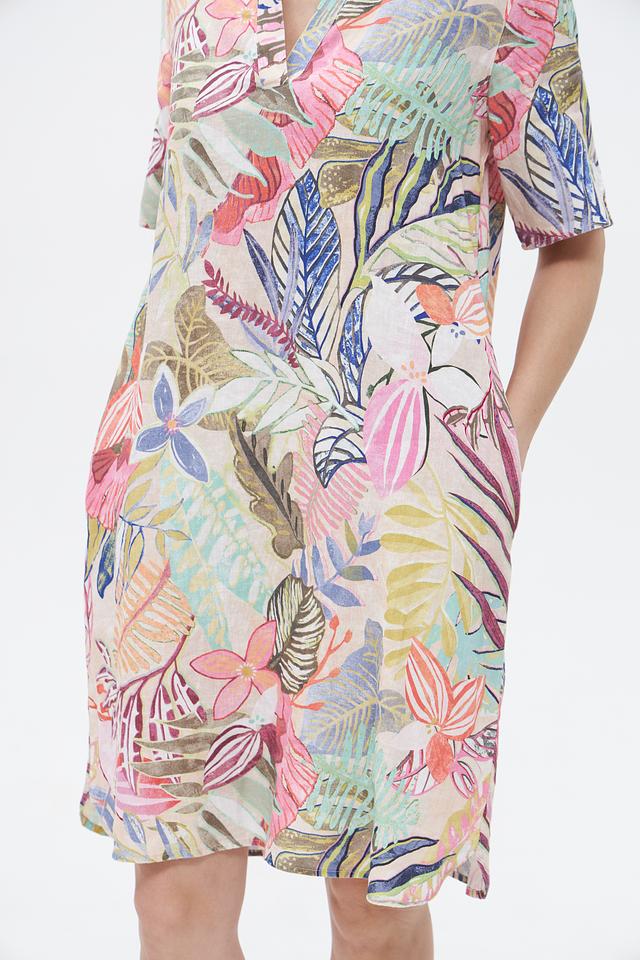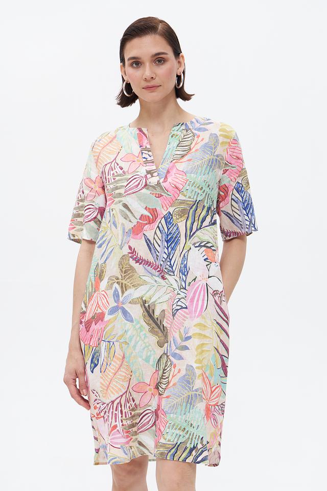 Платье Gerry Weber с ярким цветочным принтом выполнено из 100% льна, что обеспечивает комфорт и воздухопроницаемость в жаркую погоду. Удобный крой и длина миди делают его идеальным выбором для повседневной носки. Состав: лен 100%