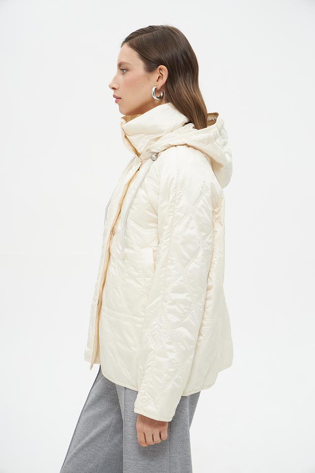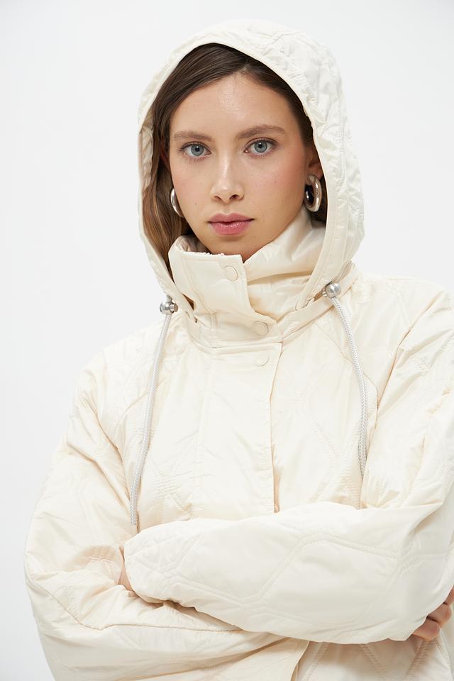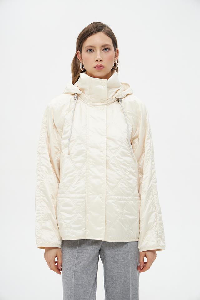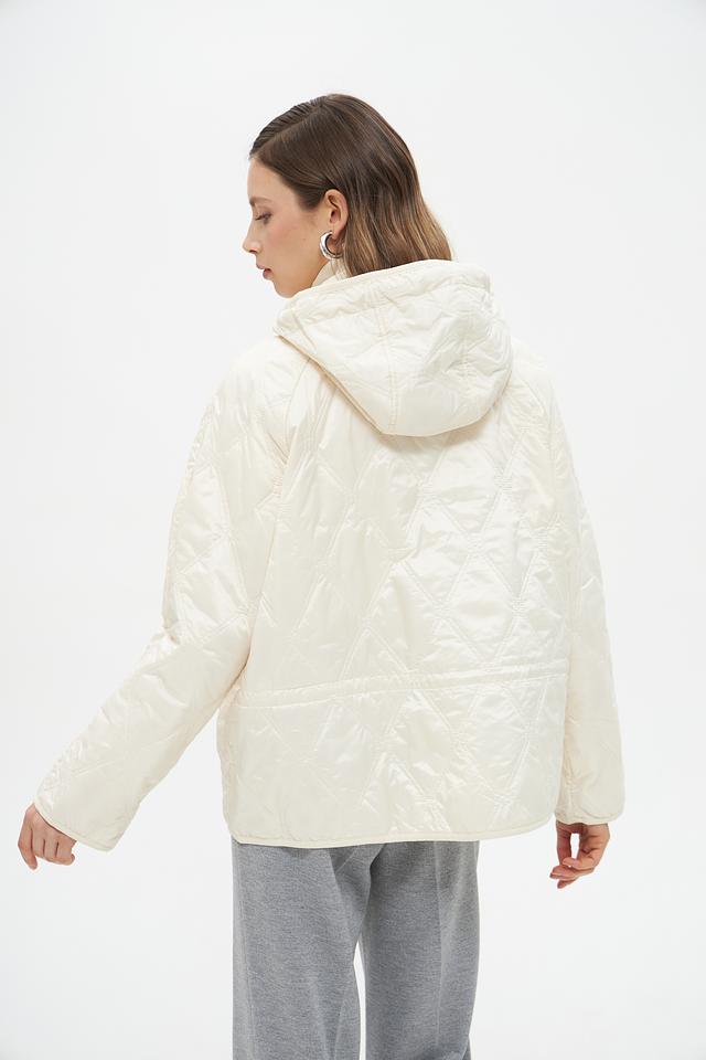 Куртка имеет стеганую фактуру, которая придает ей особый шарм и легкость. Модель оснащена капюшоном, который защитит от ветра и непогоды. Застежка-молния обеспечивает удобство и надежность.