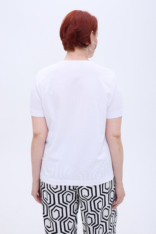 Эта футболка станет отличным дополнением к вашему гардеробу и подойдет для создания повседневных образов. Ее можно сочетать с юбками, брюками, джинсами или шортами. Белый цвет позволяет легко комбинировать ее с другими элементами одежды.