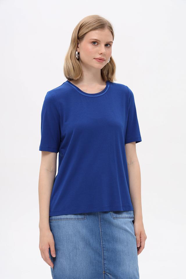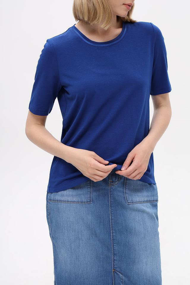 Синяя футболка Gerry Weber из мягкого хлопка с модалом. Базовая модель с короткими рукавами и круглым вырезом. Состав: 47% хлопок, 47% модал, 6% эластан. Состав: хлопок 47%, модал 47%, эластан 6%