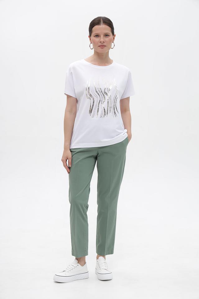 Эта футболка идеально подойдет для создания повседневных образов. Ее можно сочетать с джинсами, брюками, юбками или шортами. Дополните образ стильными аксессуарами, и вы будете выглядеть модно и элегантно.