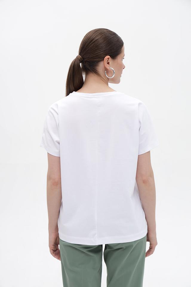 Модель имеет прямой крой и короткие рукава, что обеспечивает свободу движений и комфорт в жаркую погоду. Футболка изготовлена из высококачественного хлопка с добавлением эластана, благодаря чему она приятна к телу, хорошо держит форму и не мнется.