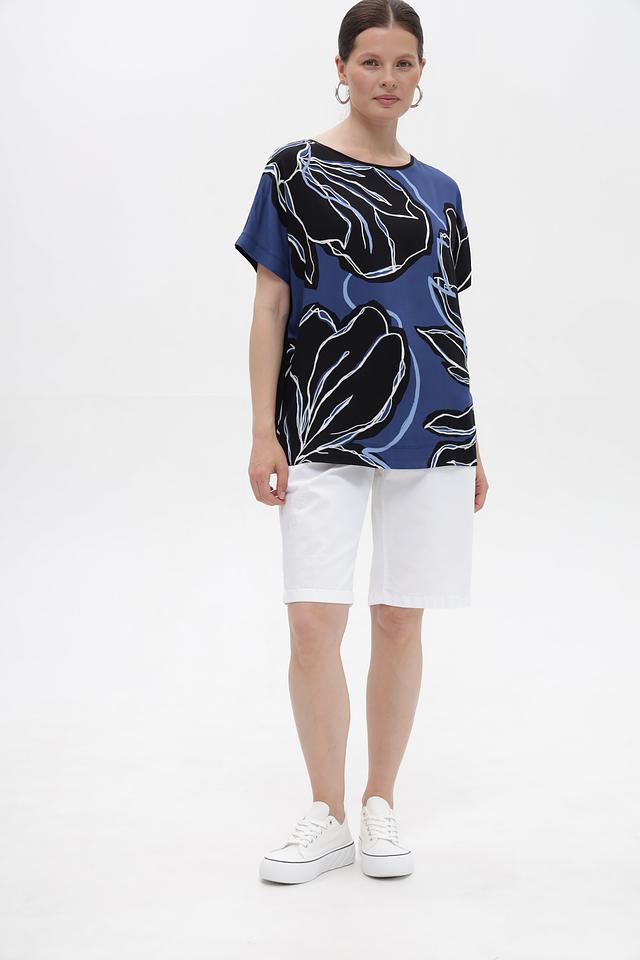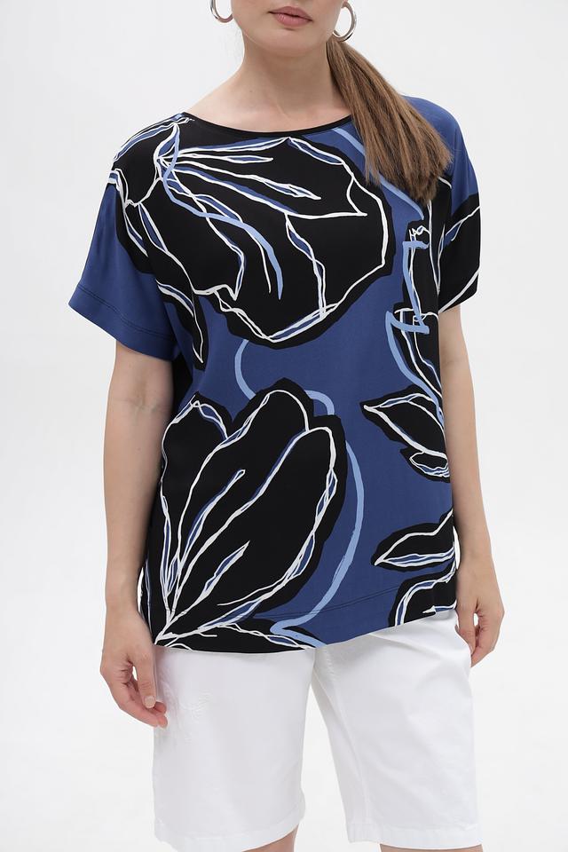Синяя блузка Gerry Weber с выразительным цветочным принтом, выполненная из мягкого хлопка с модалом. Удобный крой и приятный к телу состав. Состав: хлопок 47%, модал 47%, эластан 6%