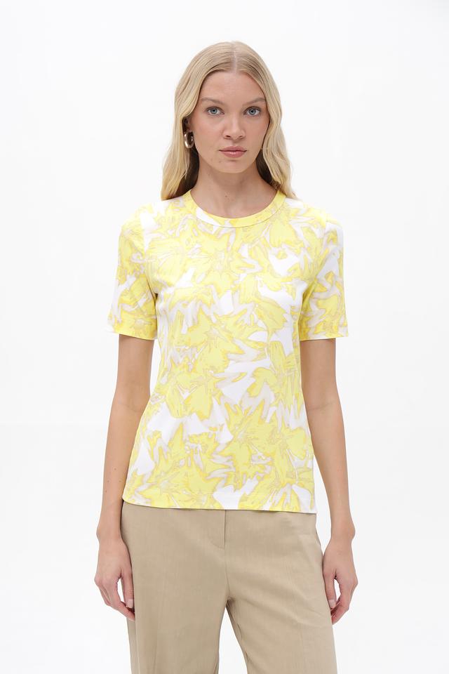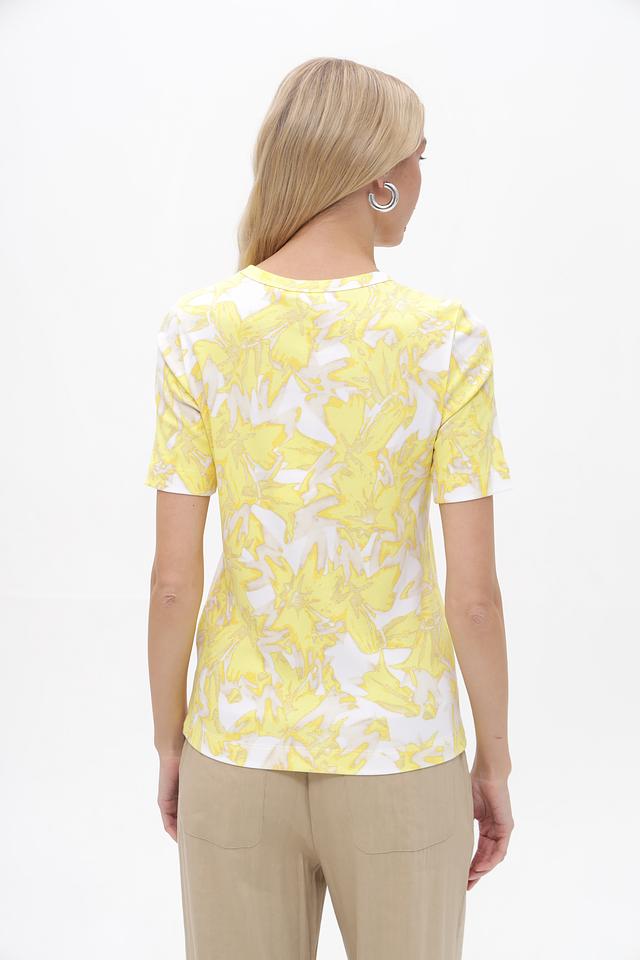 Жёлтая футболка Gerry Weber с ярким цветочным принтом станет отличным дополнением к вашему образу. Изготовлена из мягкого и приятного к телу материала, обеспечивающего комфорт в течение всего дня. Состав: хлопок 45%, модал 45%, эластан 10%
