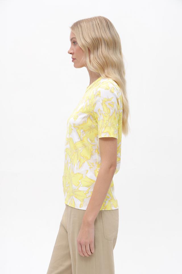 Эта стильная футболка от Gerry Weber станет прекрасным выбором для создания яркого и комфортного образа. Футболка выполнена в жёлтом цвете с оригинальным цветочным принтом, который придаёт ей изящность и лёгкость.