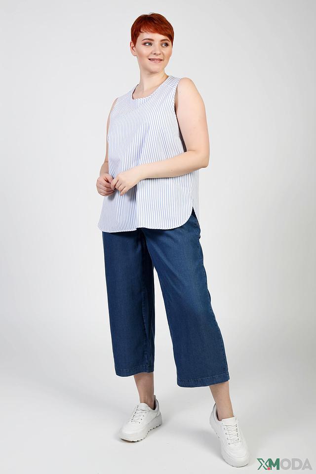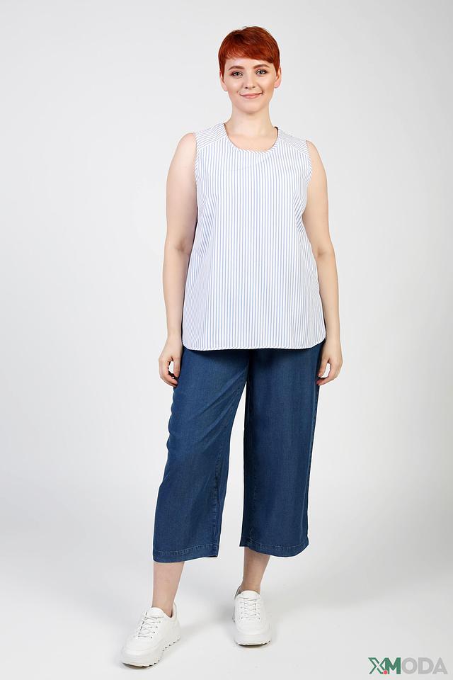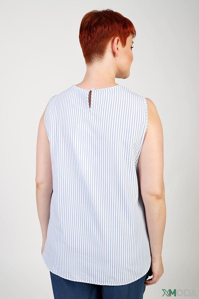 Топ имеет свободный крой, который обеспечивает комфорт в носке. Округлый вырез горловины и отсутствие рукавов делают его идеальным выбором для теплой погоды. Застежки отсутствуют, что упрощает процесс одевания.