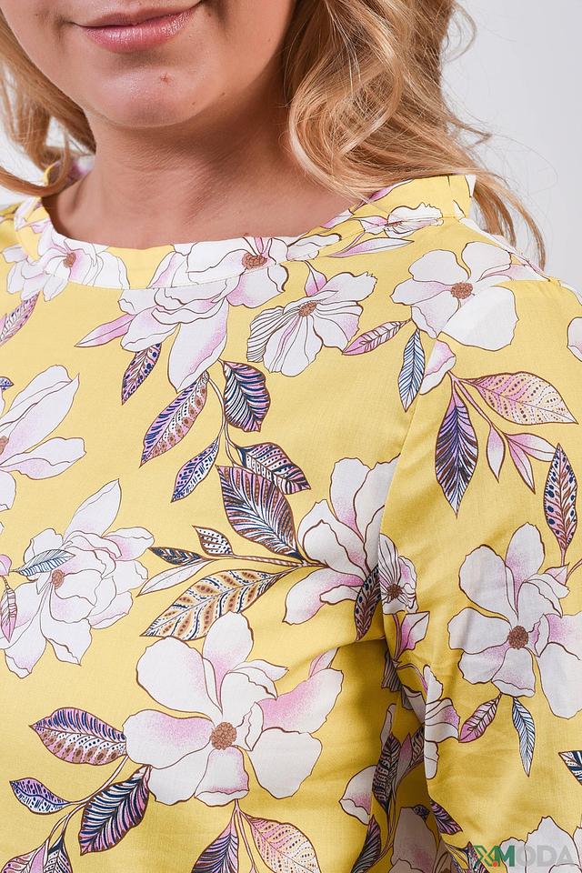 Эта стильная блуза от Gerry Weber EDITION выполнена в приятном жёлтом цвете и украшена изысканным цветочным принтом. Модель имеет округлый вырез горловины и короткие рукава 3/4, что делает её идеальным выбором для тёплой погоды.
