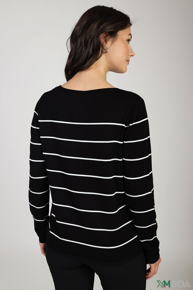 Этот пуловер от Gerry Weber станет отличным дополнением к вашему образу. Модель выполнена в классическом чёрном цвете с широкими белыми полосами, что придает ей элегантный и универсальный вид.