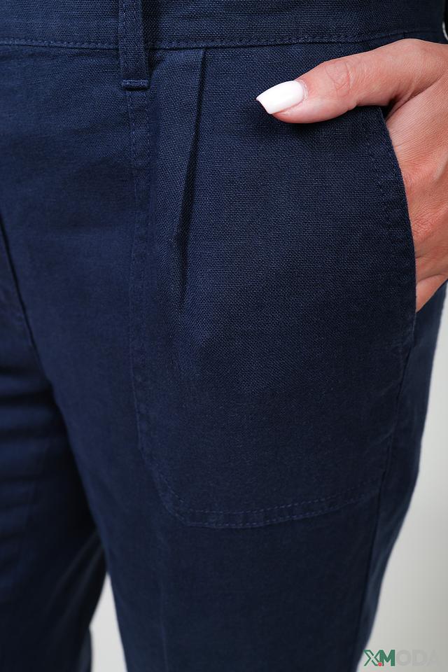 Брюки имеют стандартную посадку на талии и застегиваются на молнию и пуговицу. Они идеально сочетаются с легкими блузками, топами или футболками, создавая непринужденный и стильный образ. Льняная ткань приятна к телу и не требует особого ухода.