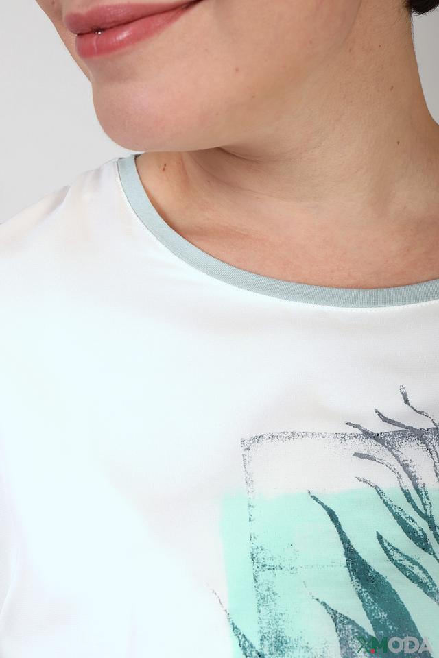 Белая футболка Gerry Weber EDITION с растительным принтом и отделкой кантом. Модель выполнена из мягкой вискозы с добавлением эластана для комфорта и хорошей посадки. Состав: вискоза 95%, эластан 5%