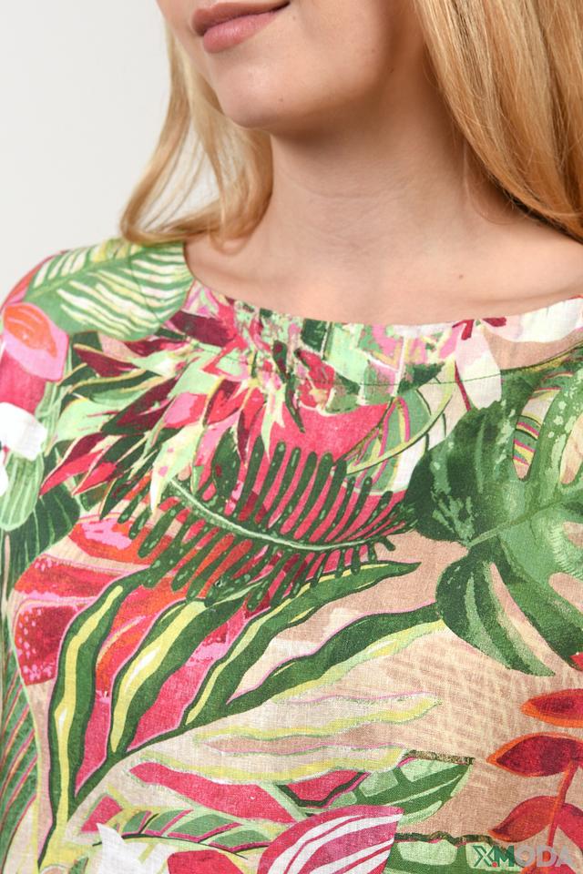 Женская блуза Gerry Weber EDITION зеленого цвета с ярким цветочным принтом выполнена из 100% льна. Лёгкий и воздушный крой делает эту блузу идеальным выбором для летнего гардероба. Состав: лен 100%