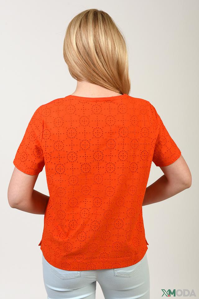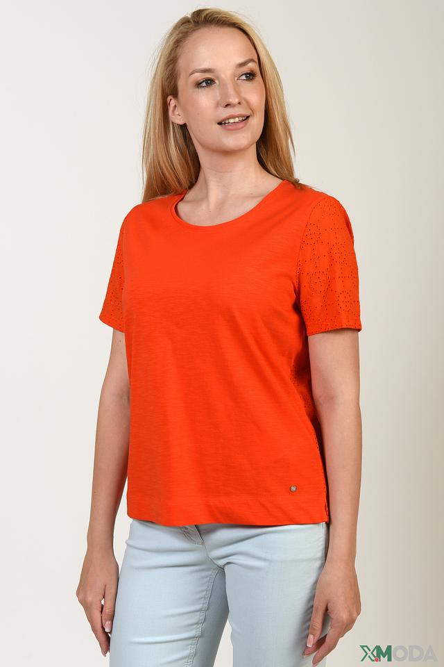 Оранжевая блуза Gerry Weber из 100% хлопка с декоративной вышивкой на рукавах. Модель имеет округлый вырез горловины и короткие рукава, идеально подходит для создания повседневных образов. Состав: хлопок 100%