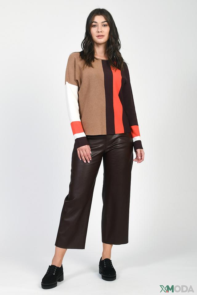 Модель имеет свободный крой, который обеспечивает комфорт в носке. Пуловер изготовлен из высококачественного трикотажа, в составе которого 82% вискозы, 15% полиамида и 3% эластана. Вискоза придает мягкость и приятные тактильные ощущения, полиамид обеспечивает форму, а эластан – эластичность и удобную посадку по фигуре.