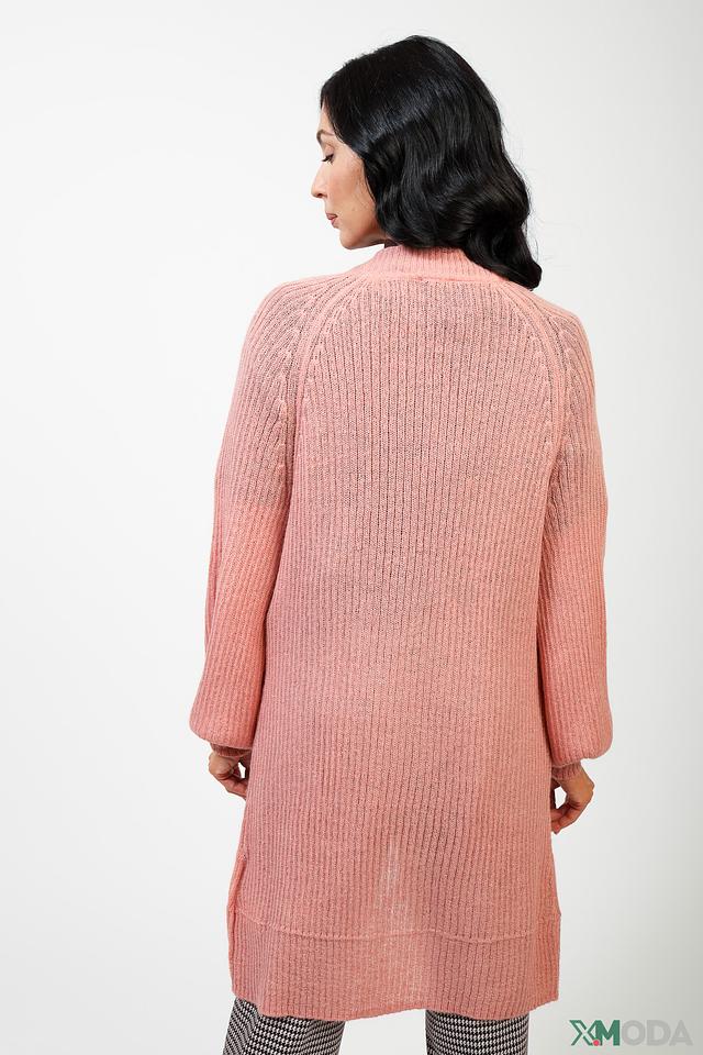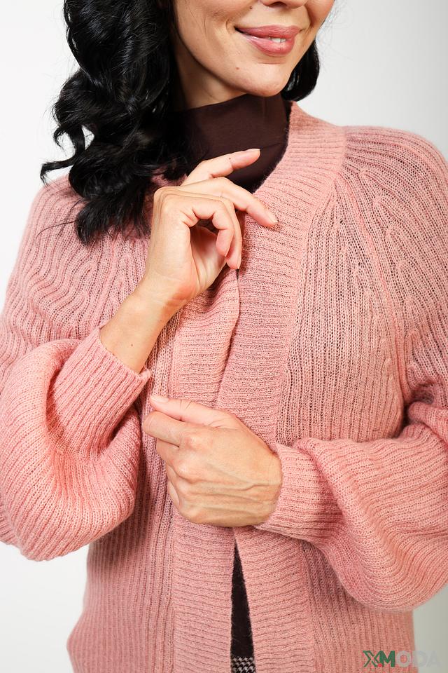Кардиган имеет длинные рукава с манжетами и открытую конструкцию без застежек. Текстура вязки с выразитым узором придает изделию особый шарм и делает его интересным акцентом в вашем наряде.
