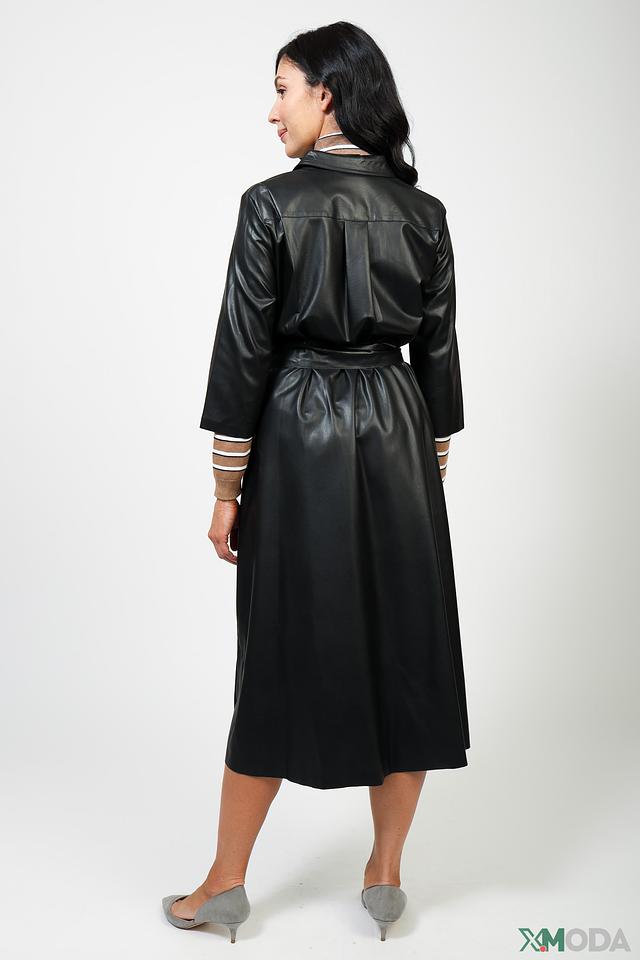 Чёрное платье от Gerry Weber выполнено из гладкой экокожи с рубашечным кроем и акцентным поясом. Стильный и элегантный выбор для создания эффектного образа. Состав: вискоза 85%, полиэстер 15%