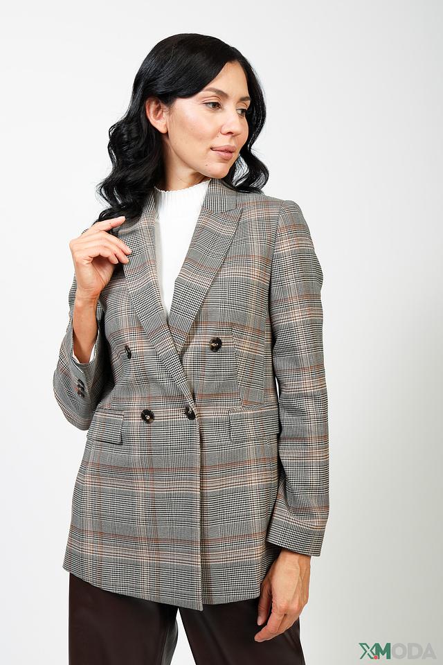 Жакет Gerry Weber серого цвета в классическую клетку – элегантная модель прямого кроя с двубортной застежкой. Жакет выполнен из качественного смесового материала с добавлением вискозы и эластана, что обеспечивает комфорт и хорошую посадку по фигуре. Состав: Состав_подкладка ацетат 100%, полиэстер 63%, вискоза 34%, эластан 3%