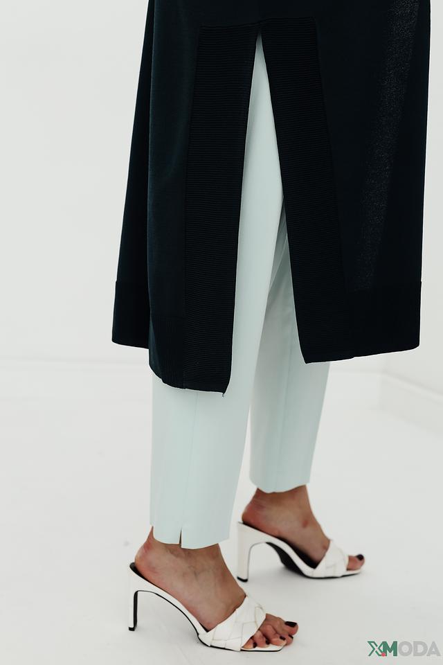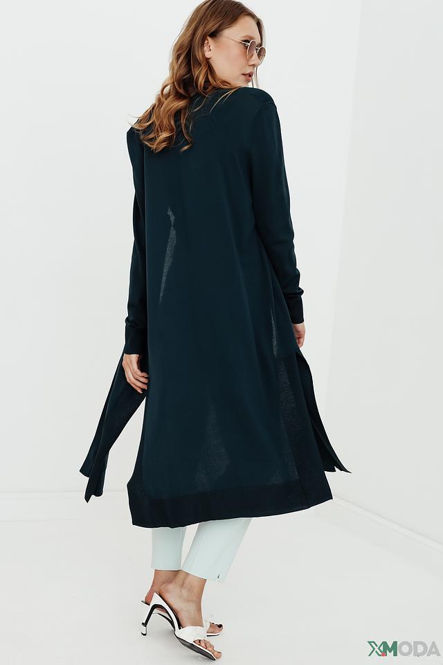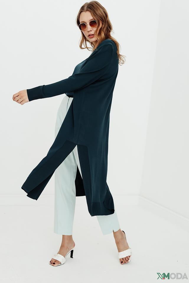 Кардиган имеет свободный крой, который обеспечивает комфортную посадку по фигуре. Длинные рукава и отсутствие застежек делают его практичным и удобным в носке. Разрезы по бокам добавляют динамики и позволяют свободно двигаться.