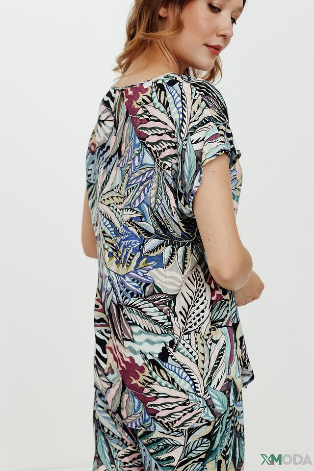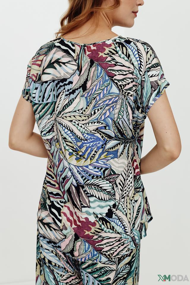 Блуза имеет свободный крой, который не сковывает движений и позволяет создать расслабленный образ. Короткие рукава делают ее идеальной для теплой погоды.