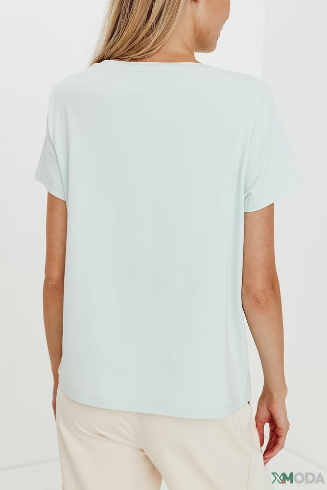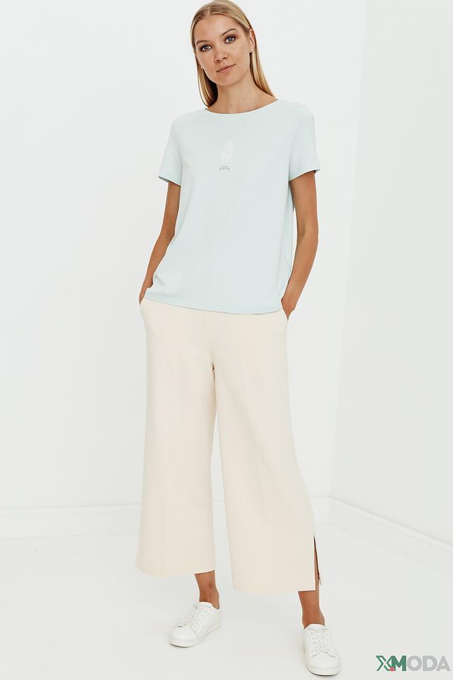 Модель имеет прямой крой и короткие рукава, что обеспечивает комфорт в жаркую погоду. Круглый вырез горловины подчеркивает женственность силуэта. Футболка изготовлена из высококачественного материала, сочетающего в себе 47% хлопка, 45% модал и 8% эластан. Такое сочетание обеспечивает мягкость, приятные тактильные ощущения и хорошую посадку по фигуре.