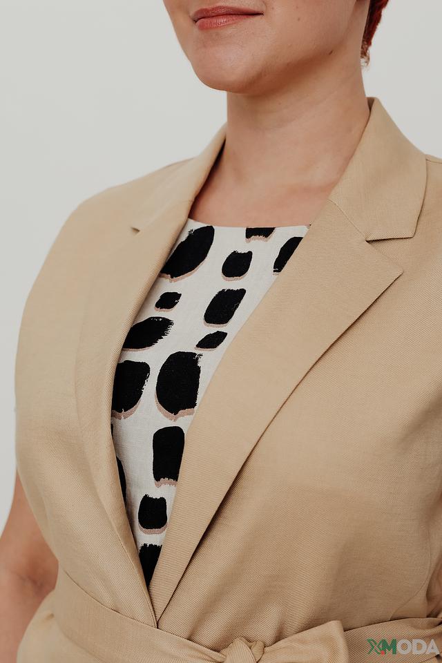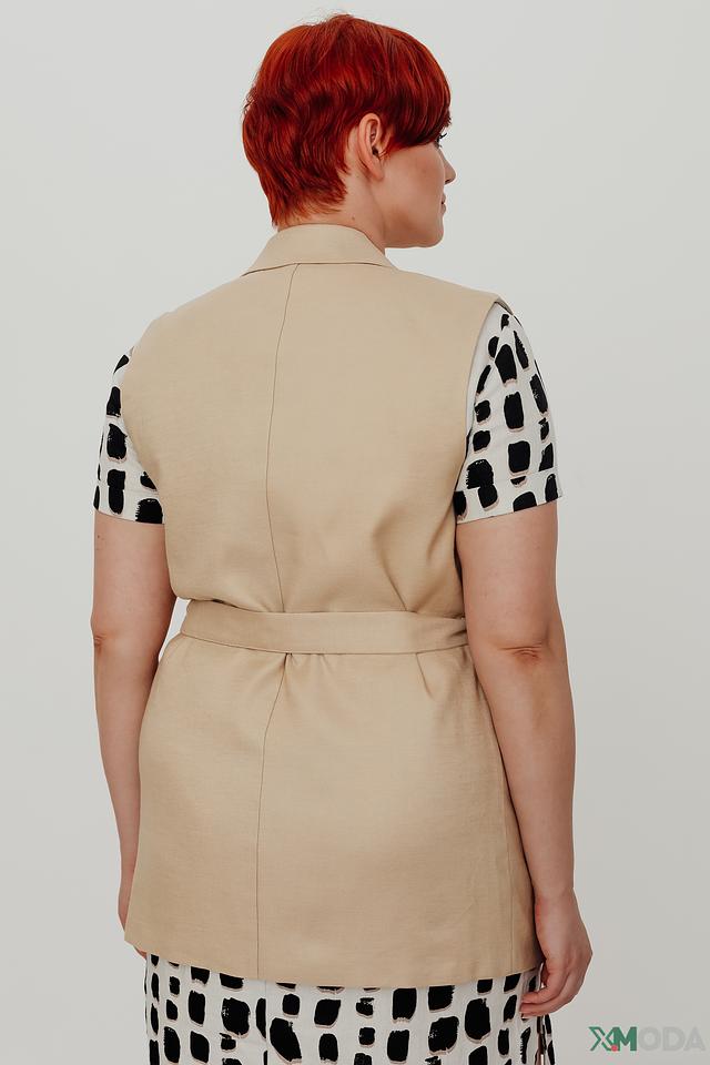 Состав ткани – 68% лен и 32% полиэстер. Лен обеспечивает комфорт и воздухопроницаемость, а полиэстер добавляет прочности и износостойкости. Этот жилет идеально подходит для теплой погоды и станет отличным выбором для создания стильных образов.