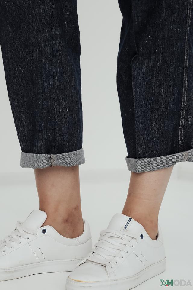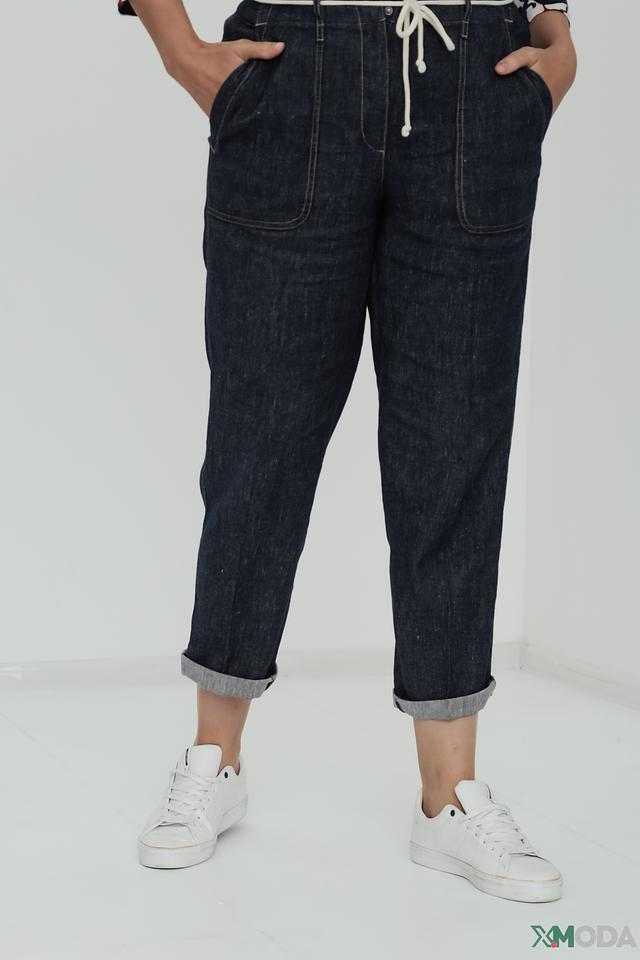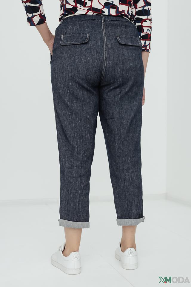 Состав ткани: 53% хлопок, 45% лен, 2% эластан. Хлопок обеспечивает комфорт и воздухопроницаемость, лен придает ткани приятную текстуру, а эластан обеспечивает хорошую посадку по фигуре и свободу движений. Джинсы имеют укороченный крой и слегка зауженный силуэт.