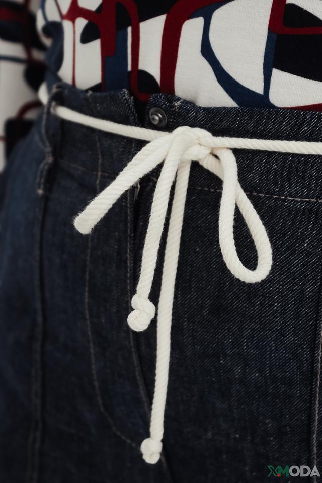 Джинсы имеют удобную посадку, благодаря чему они идеально подойдут для повседневной носки. Пояс дополнен декоративными завязками, которые позволяют регулировать посадку и подчеркивают талию. На передней части брюк расположены функциональные карманы с декоративной отделкой.
