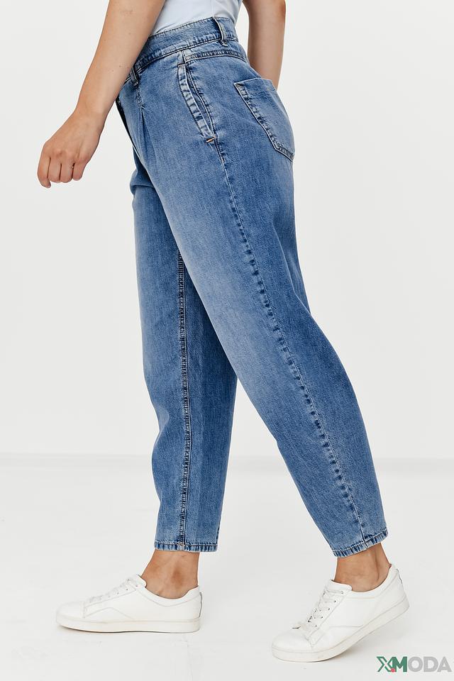 Модель отличается завышенной талией, которая визуально удлиняет ноги и подчеркивает талию. Широкие штанины создают расслабленный и современный силуэт. Джинсы имеют классическую застежку на молнию и пуговицу, а также функциональные карманы.