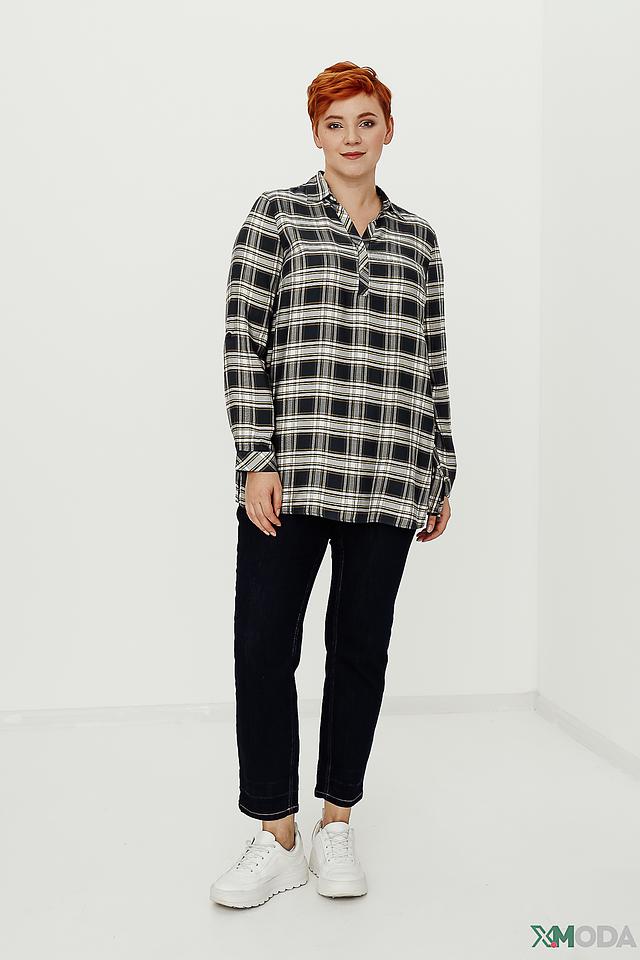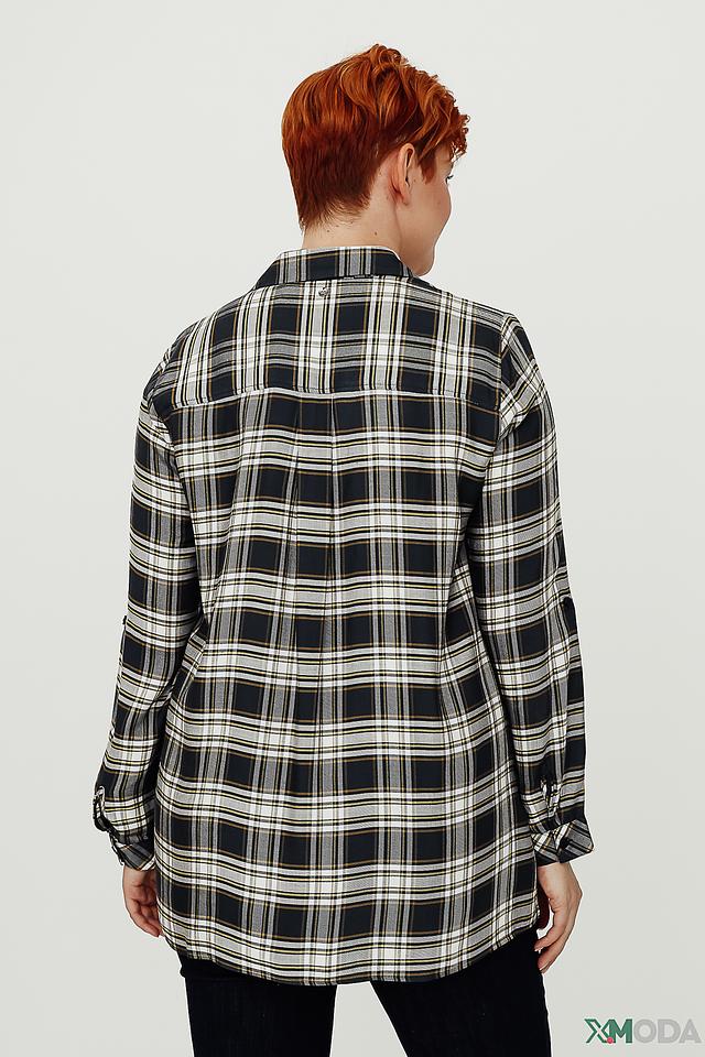 Женская рубашка Gerry Weber чёрно-белого цвета в классическую клетку. Изготовлена из мягкой вискозы, имеет свободный крой и застёжку на пуговицы. Состав: вискоза 100%