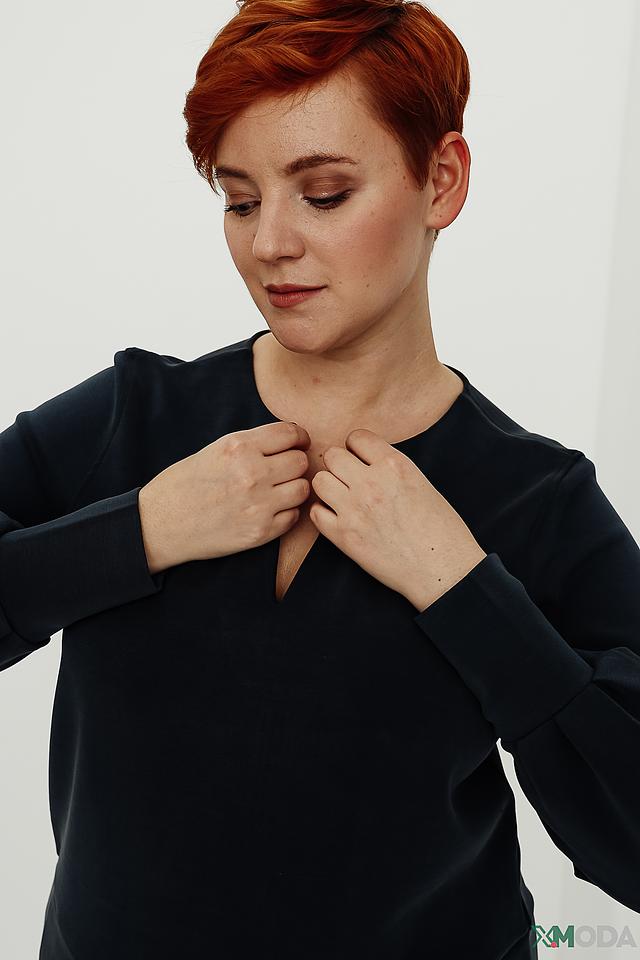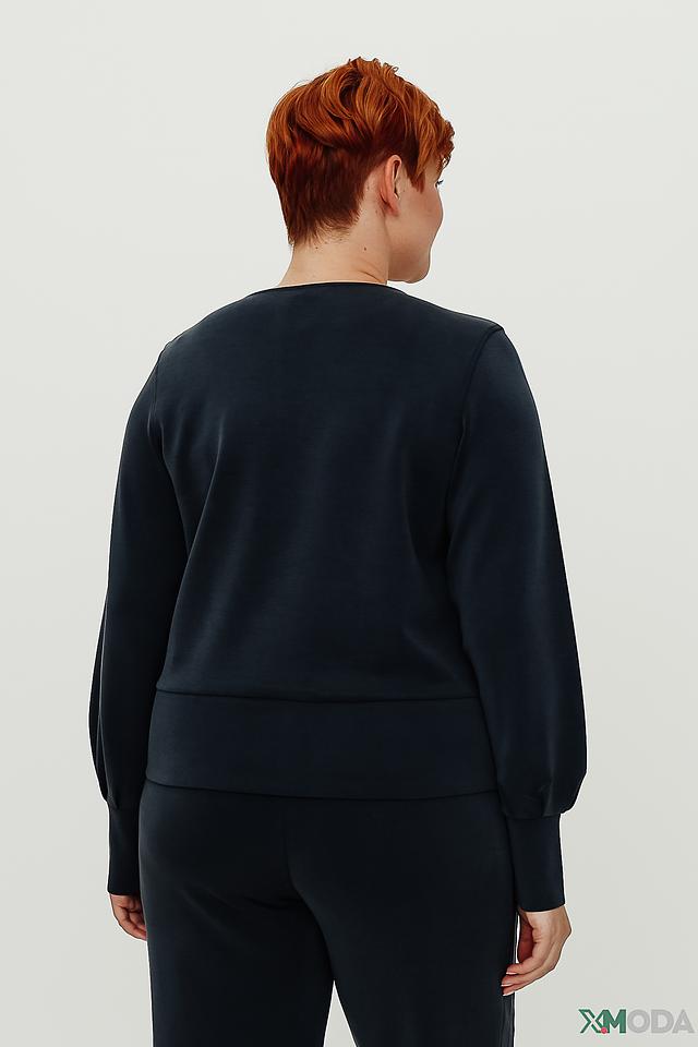 Особенностью пуловера является V-образный вырез горловины и рукава-фонарики, которые придают изделию женственность и элегантность. Пуловер изготовлен из мягкого и приятного к телу трикотажа, в составе которого модал, полиэстер и эластан.