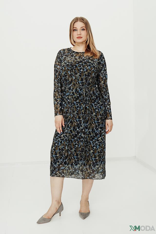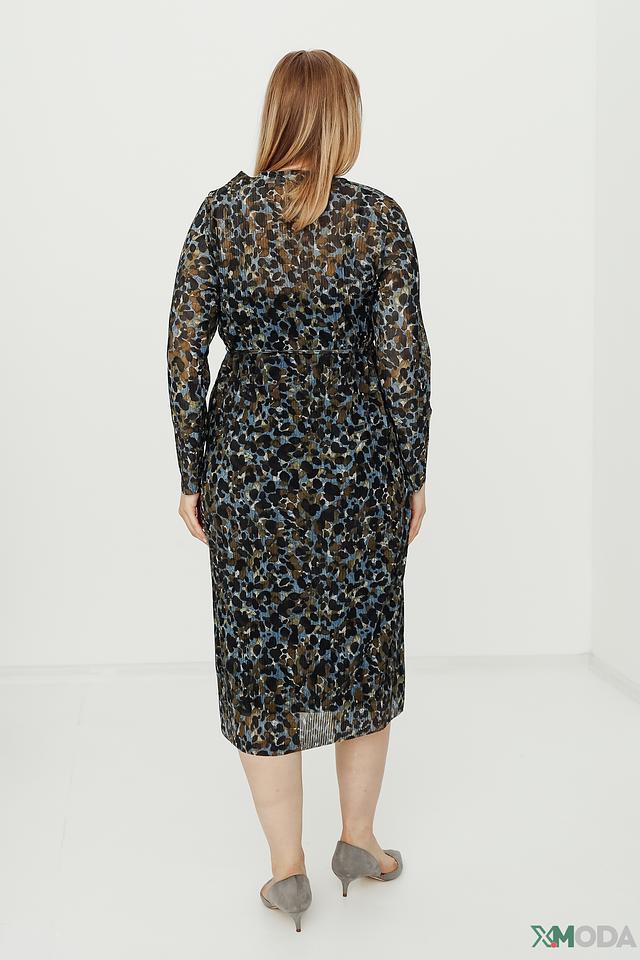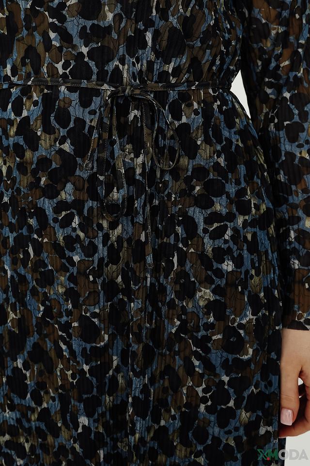 Платье имеет длинные рукава и V-образный вырез, что придает ему элегантный вид. Оригинальный леопардовый принт делает этот образ запоминающимся и ярким. Акцентный пояс подчеркивает талию и создает женственный силуэт.