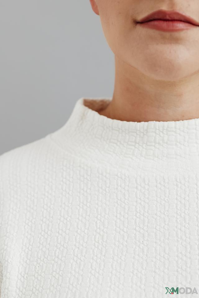 Белый пуловер от Gerry Weber с объёмной текстурой и высоким воротником-стойкой. Изготовлен из 100% хлопка, обеспечивая комфорт и воздухопроницаемость. Идеальный выбор для создания стильного и уютного образа. Состав: хлопок 100%