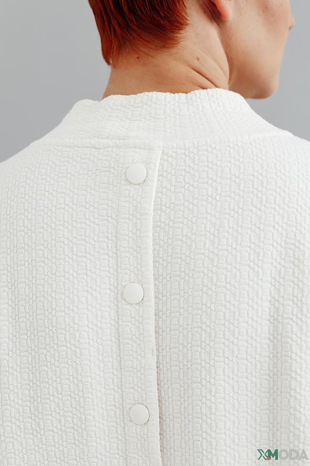 Изготовленный из 100% хлопка, этот пуловер очень приятен к телу, хорошо пропускает воздух и обеспечивает комфорт в течение всего дня. Свободный крой не сковывает движений, а застёжка на пуговицах в задней части добавляет удобства при надевании.