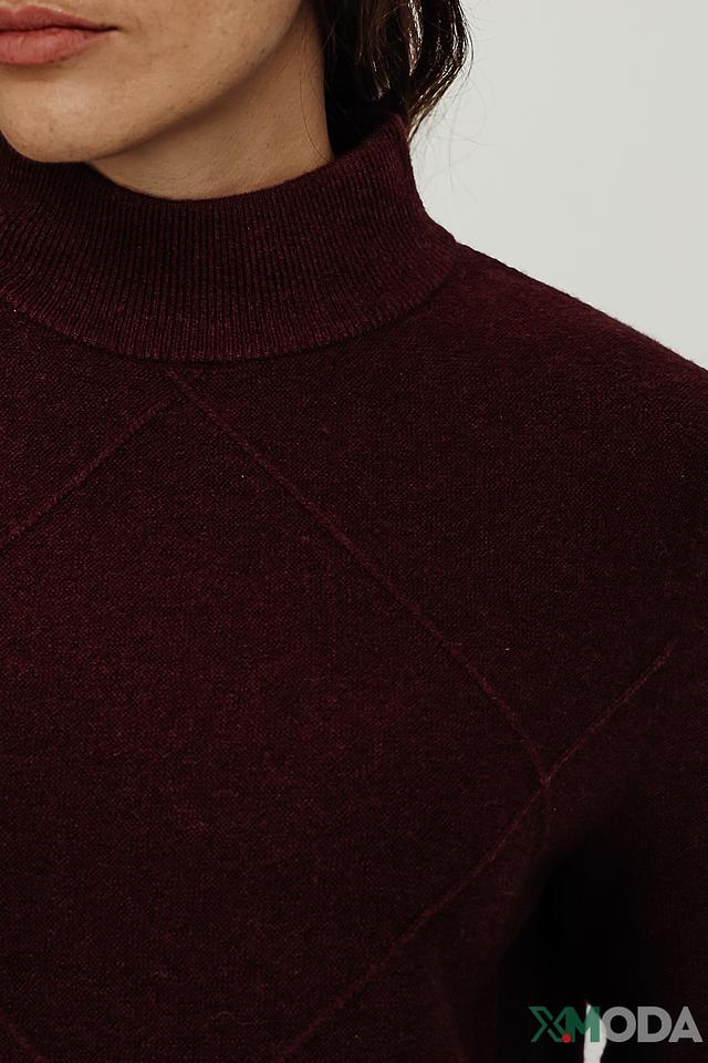 Женский пуловер Gerry Weber бордового цвета с геометрическим узором из ромбов. Модель выполнена из мягкой пряжи с добавлением хлопка, полиамида и шерсти, что обеспечивает комфорт и тепло. Идеально подходит для создания стильных повседневных образов. Состав: хлопок 55%, полиамид 26%, полиакрил 10%, шерсть 5%, эластан 4%