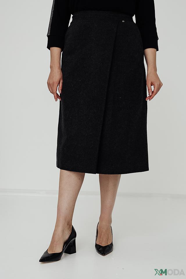 Юбка имеет длину миди и асимметричный крой, который визуально стройнит фигуру. Декоративная складка на талии добавляет изысканности и подчеркивает талию. Ткань юбки представляет собой смесь полиэстера, полиакрила, шерсти и других волокон, что обеспечивает комфорт в носке и практичность в уходе.