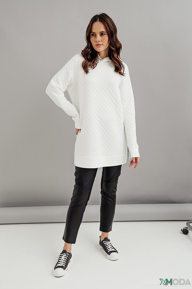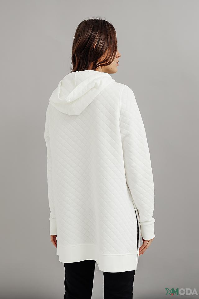 Белый пуловер от Gerry Weber EDITION с объёмным кроем и стеганой фактурой. Модель с капюшоном и боковыми разрезами для комфортной посадки. Идеальный выбор для создания уютного и стильного образа. Состав: хлопок 37%, модал 37%, полиэстер 26%